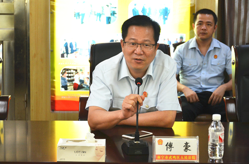 ????“武鸣区人民法院民事审判庭,现在开庭!”5月29日下午,随着清脆的法槌声响起,一起劳务合同纠纷案在我院五号法庭公开开庭审理。与此同时,一场庭审技能竞赛的观摩活动也在同步进行,由南宁市中院副院长梁满红任组长的庭审技能竞赛活动评审组一行11人现场观摩案件庭审,我院党组书记、院长傅豪及该院20余名员额法官一同到场观摩。????我院对此次庭审观摩活动进行了周密部署和精心安排,除选取较典型的一起劳务合同纠纷案件作为观摩庭参加庭审评比外,庭审全程还在中国庭审公开网进行同步直播,确保现场观摩和网络直播均顺利进行。